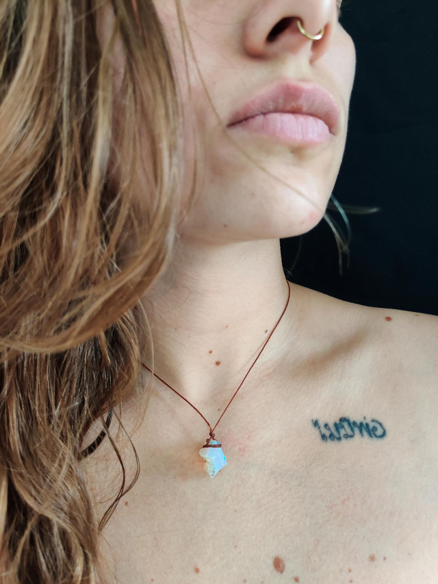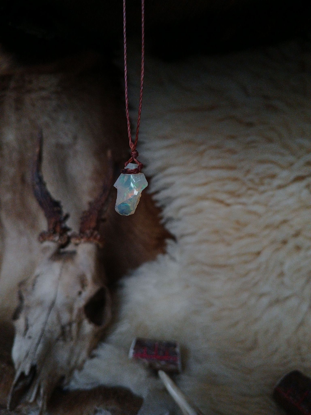 Ce joli talisman arborant une sublime opale naturelle, directement venue d’Ethiopie.